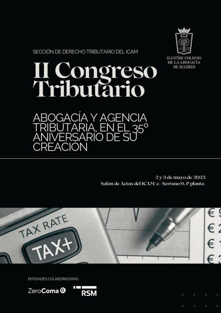 El Ilustre Colegio de la Abogacía de Madrid (ICAM), a través de su Sección de Derecho Tributario, celebrará los próximos 2 y 3 de marzo el II Congreso Tributario, con motivo del 35.º aniversario de la creación de la Agencia Tributaria. El encuentro tendrá lugar en el Salón de Actos del ICAM y reunirá a destacados expertos de la Abogacía, la Administración tributaria, la Judicatura y la Academia.