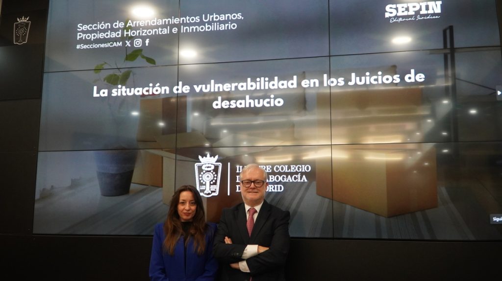 La Sección de Arrendamientos Urbanos, Propiedad Horizontal e Inmobiliario del Ilustre Colegio de la Abogacía de Madrid celebró el pasado 12 de marzo una jornada titulada “La situación de vulnerabilidad en los juicios de desahucio”, un encuentro dirigido a analizar el marco jurídico y la aplicación práctica de este concepto en los procedimientos de arrendamiento. La sesión fue moderada por Alberto Torres, presidente de la Sección, y contó con la intervención de Sandra Esther Flores Grandoso, abogada y coordinadora del Servicio de Orientación Jurídica de Vivienda del ICAM.