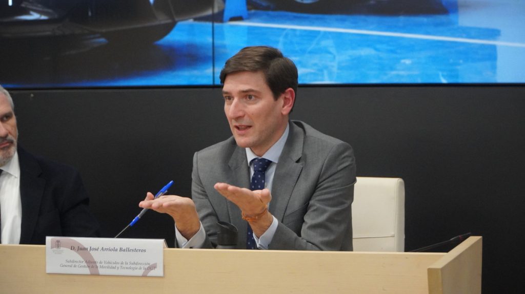 La primera ponencia fue impartida por Juan José Arriola Ballesteros, subdirector adjunto de Vehículos de la Subdirección General de Gestión de la Movilidad y Tecnología de la Dirección General de Tráfico. Su intervención se centró en la situación actual del marco regulatorio aplicable a los vehículos automatizados, incluyendo el régimen de pruebas en vías públicas y el papel de la administración en el desarrollo de iniciativas vinculadas a este ámbito, entre ellas el Programa Marco ES-AV.
